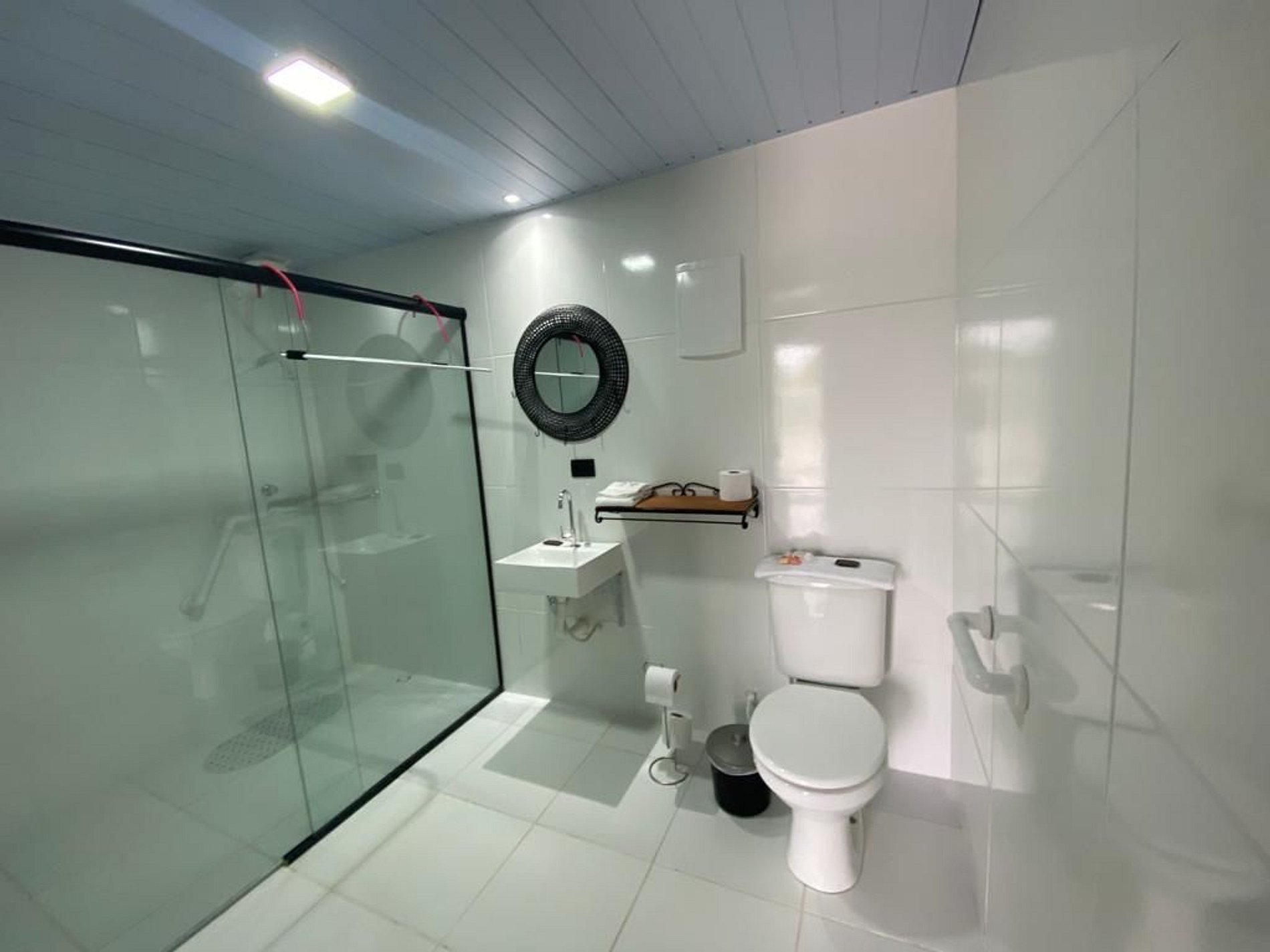 O quarto é equipado com banheiro privativo, ar-condicionado moderno, TV Smart e frigobar.