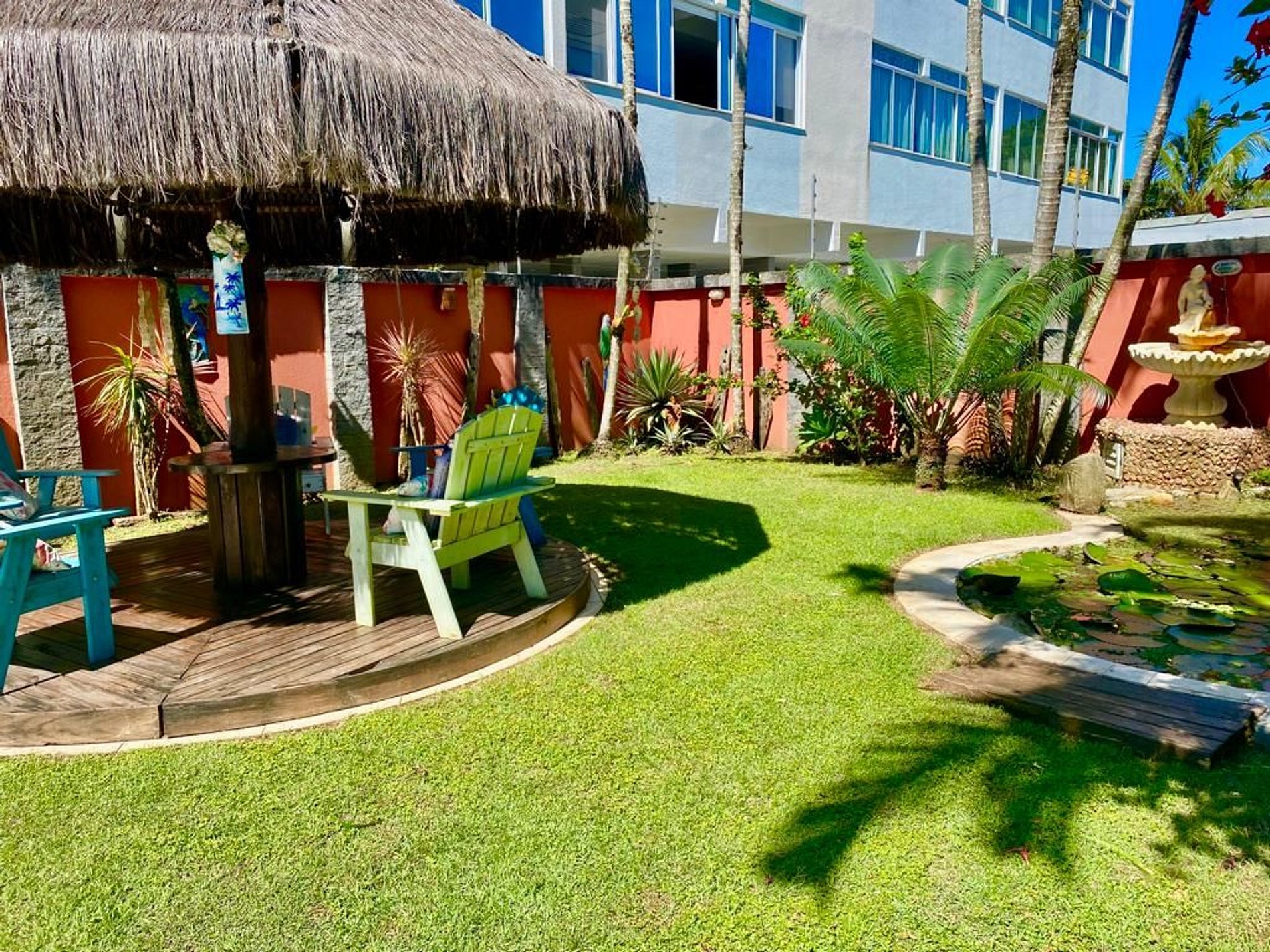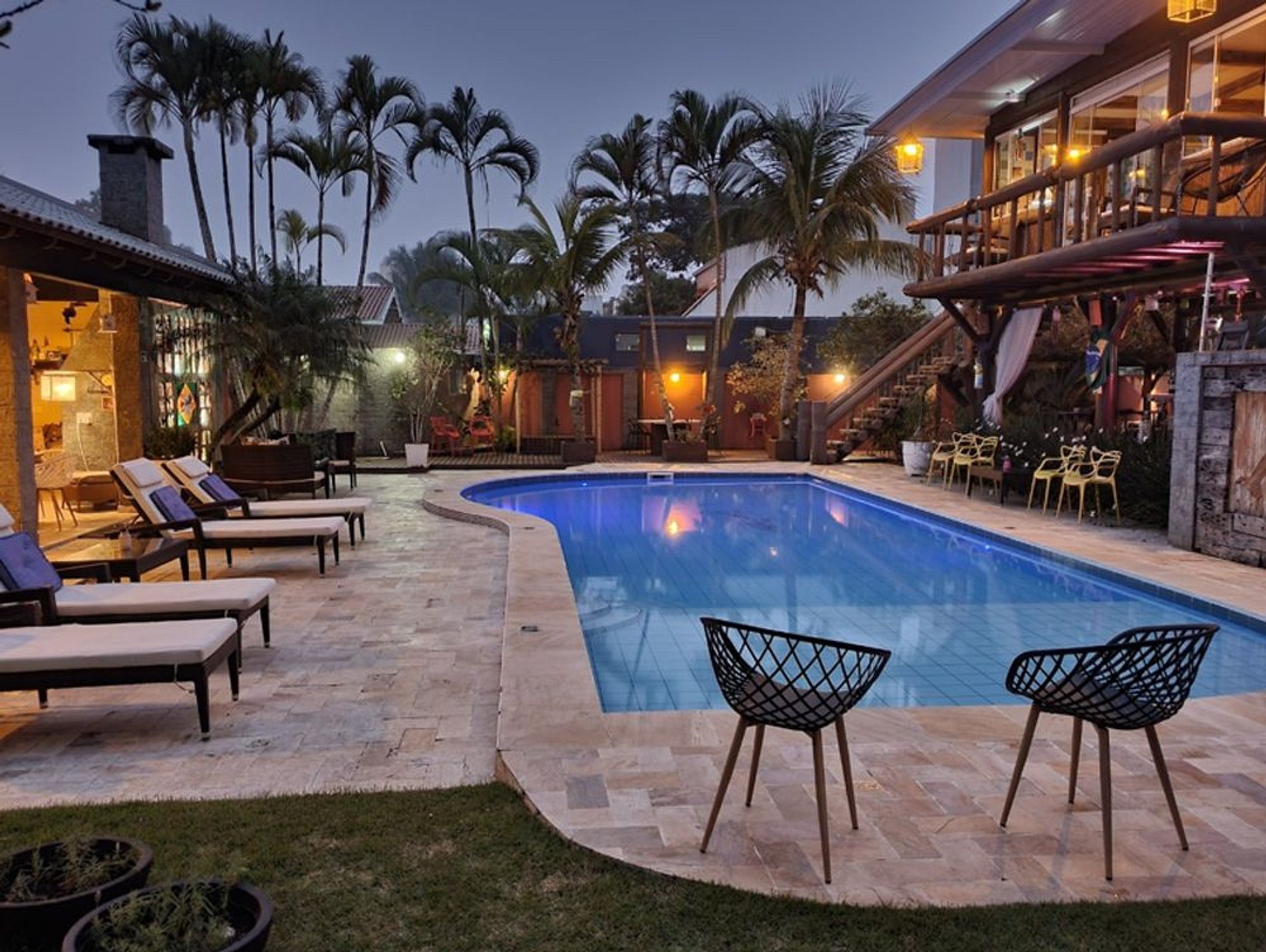 Reservando nosso quarto, você hóspede terá acesso a toda área comum da pousada, tais como piscina e suas espreguiçadeiras e namoradeiras a beira da mesma, sauna úmida e seca, cantinhos harmoniosos como nosso deck e cantinho Português (poltrona e redes) tudo de forma gratuita.