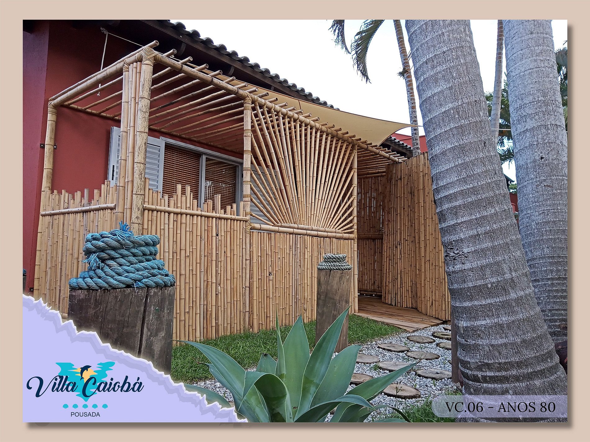 A frente contém uma varanda e pergolado toda feita em bambu com uma namoradeira bem aconchegante.